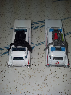 The accessories on the top of Ecto-1 are individually painted on the new version. The wheels are also white walls. Each car just looks more finished.