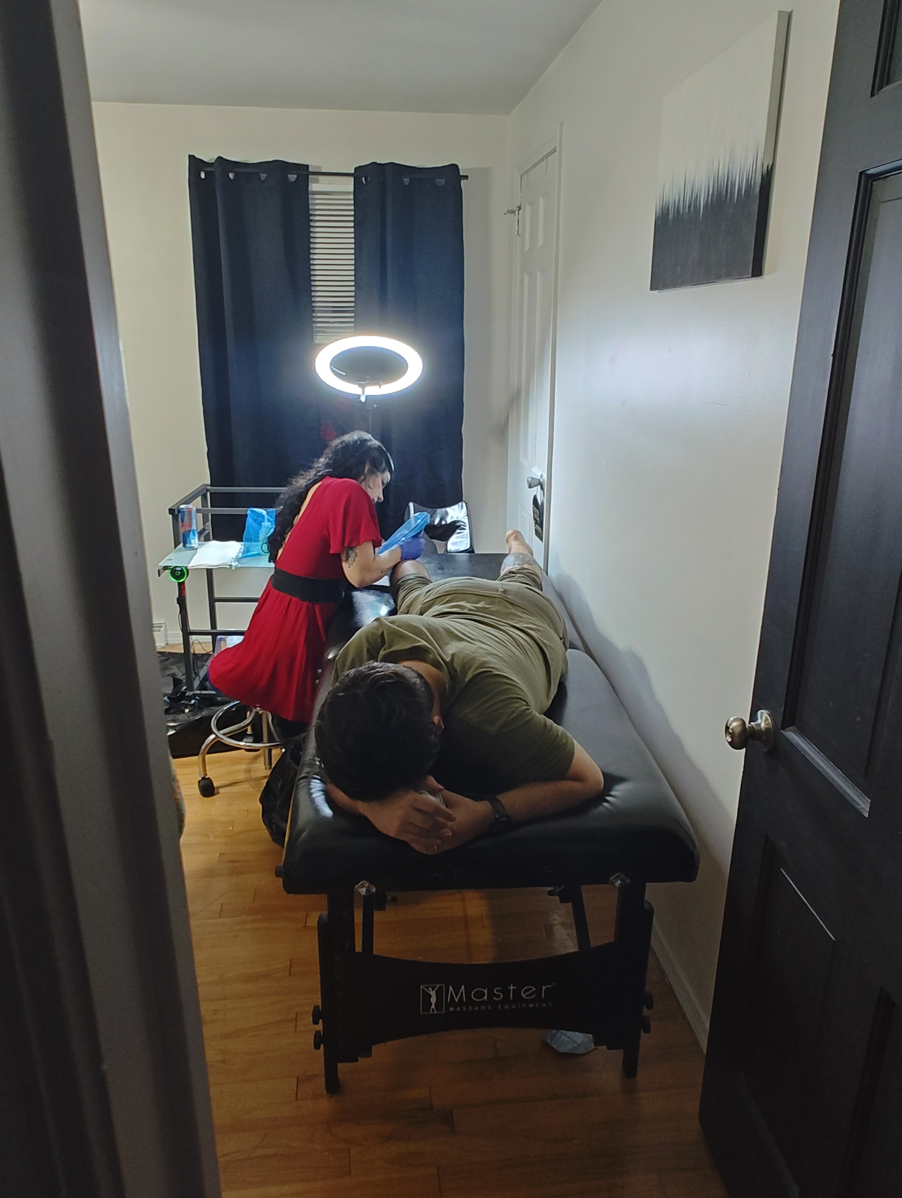 So let's talk about this party. There was not an inch of Ryan's house that wasn't Halloween. He said this was his wife's Christmas. It was the all Halloween everywhere. They had a live tattoo artist upstairs and I watched this guy get fresh ink. How crazy is that?!